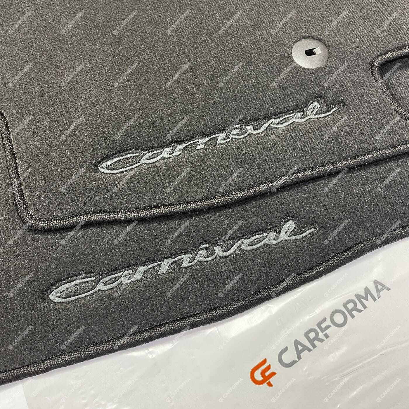 Все автомобильные коврики для KIA Carnival III 7 мест (2014 - 2021) от CARFORMA в Рязани (Рязанская область) изготавливаются из EVA-материала по оригинальным лекалам, благодаря чему полностью повторяют форму салона, все заводские выступы и вырезы напольного покрытия автомобиля. Коврики фиксируются на полу при помощи специальных клипс и остаются на месте даже при очень быстрой езде.